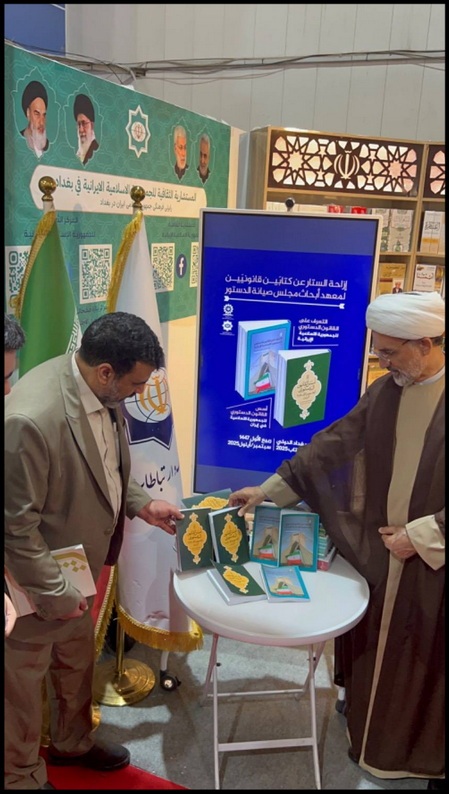 گزارش تصویری آیین رونمایی از دو اثر علمی جدید پژوهشکده شورای نگهبان به زبان عربی در نمایشگاه بینالمللی کتاب بغداد ۲۰۲۵
