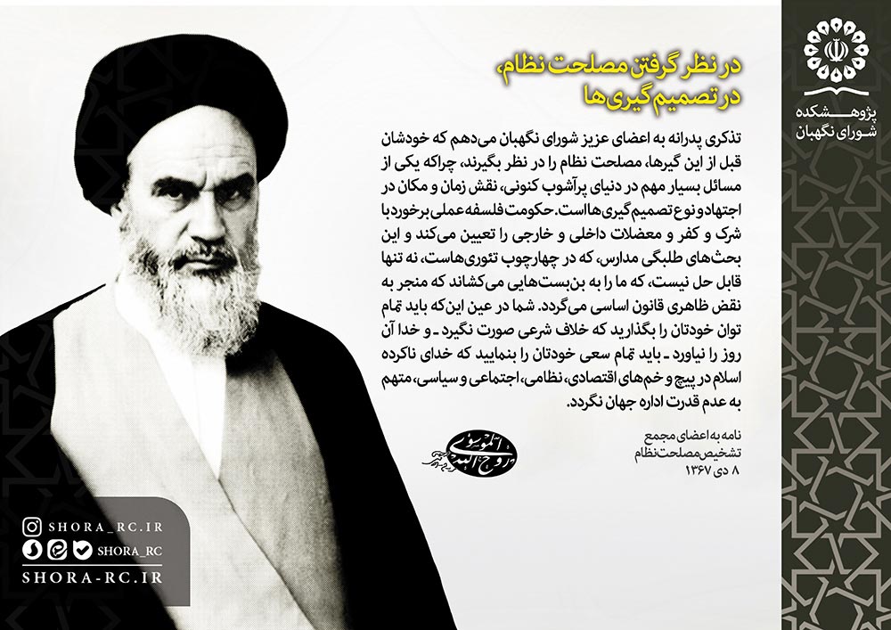 در نظرگرفتن مصلحت نظام، در تصمیم گیری ها