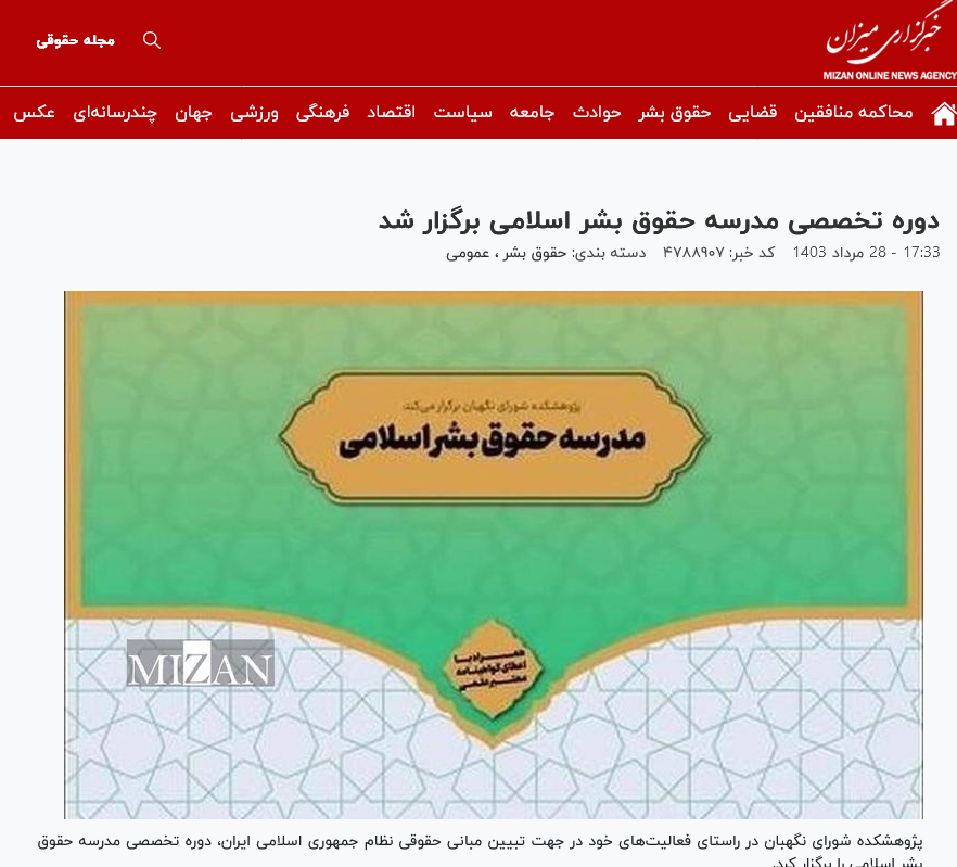 میزان/دوره تخصصی مدرسه حقوق بشر اسلامی برگزار شد